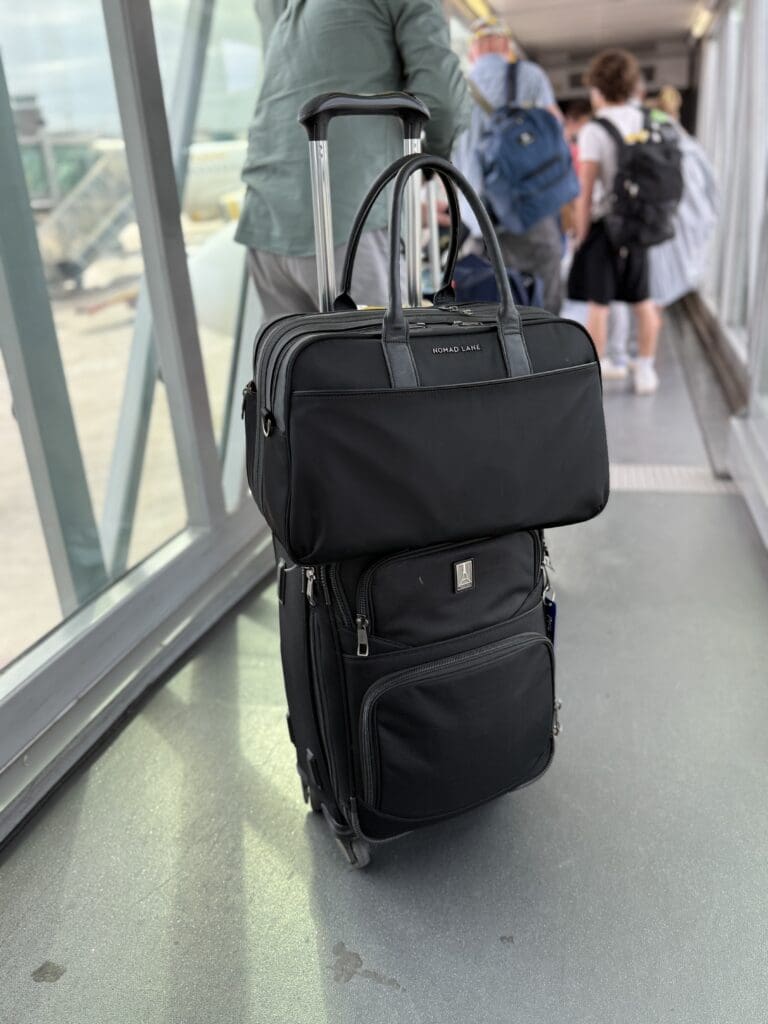 I started packing with intention. Rolling instead of folding. Choosing pieces that actually worked together and that I could reuse rather than a bunch of random outfits. Suddenly, I was breezing through airports, gliding down aisles, and getting on and off that hotel shuttle with ease. Plus, when I’m non-reving and end up last on and no overhead bin space, the Bento Bag fits perfectly under the seat on just about every aircraft out there. (Trust me, I’ve tried lol.)